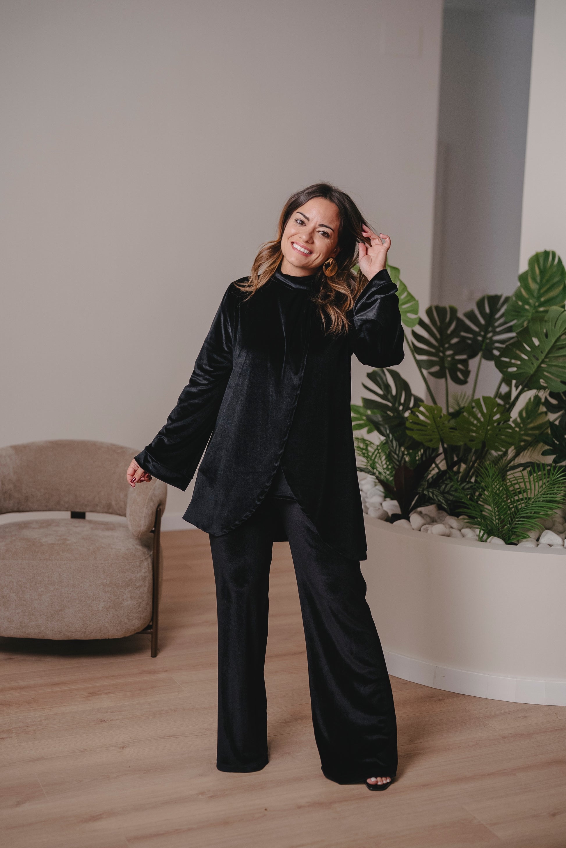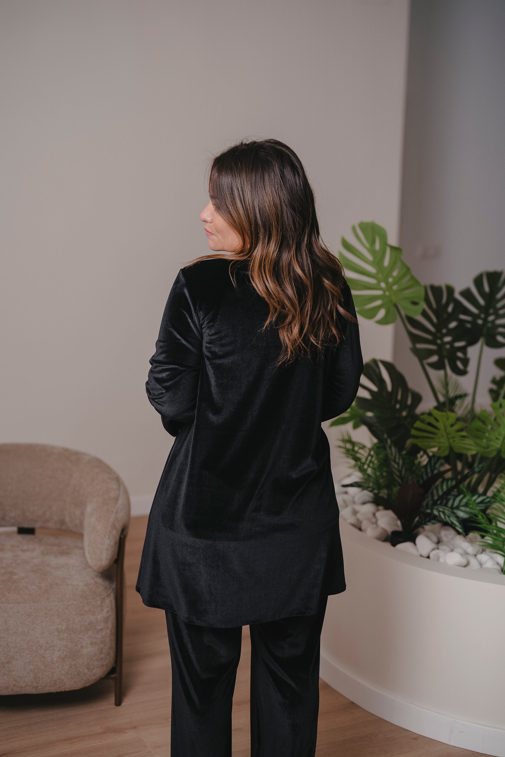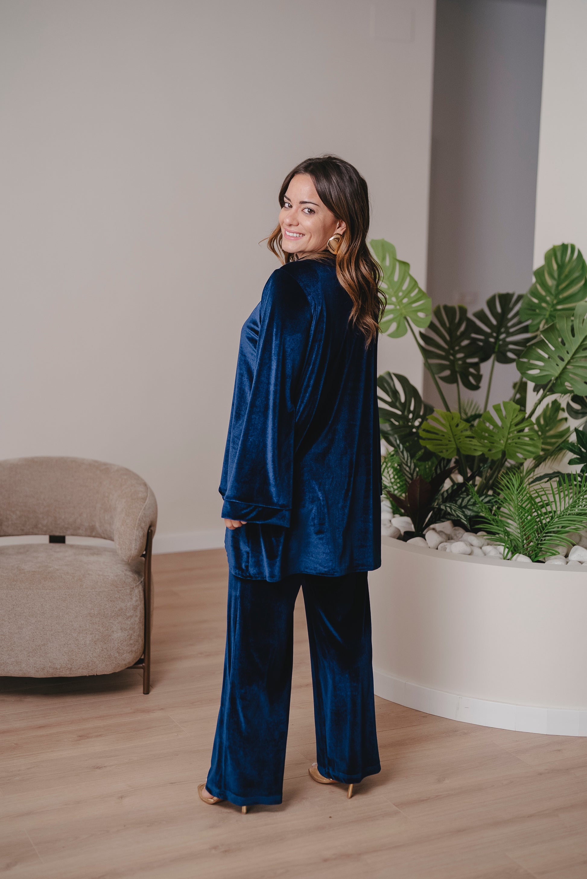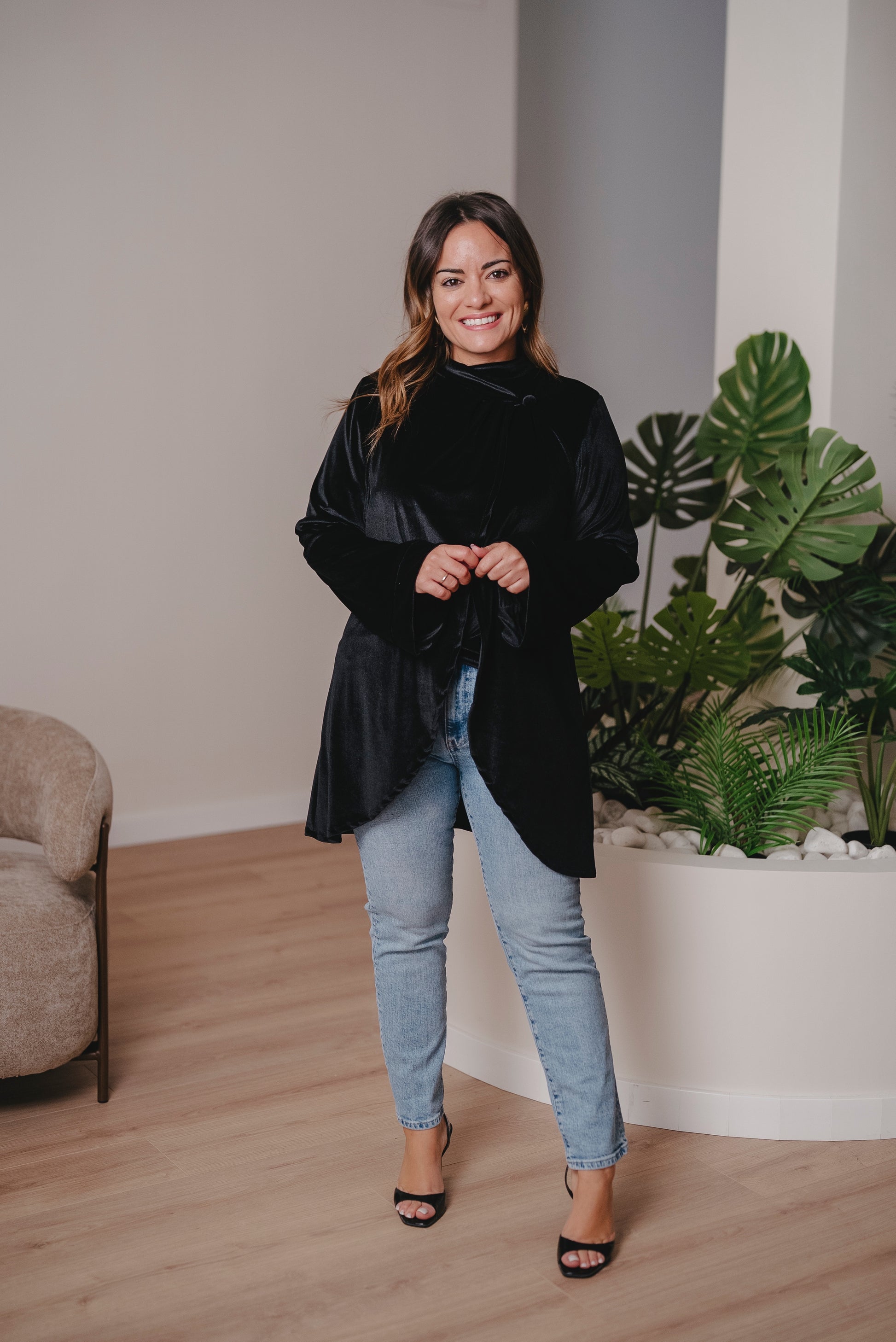 Ideal para llevarlo con vaqueros o pantalón del mismo tejido