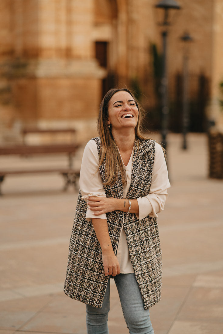 Con cuadros en tonos marrones y detalles de lentejuelas muy pequeñitas que le dan un toque muy original.