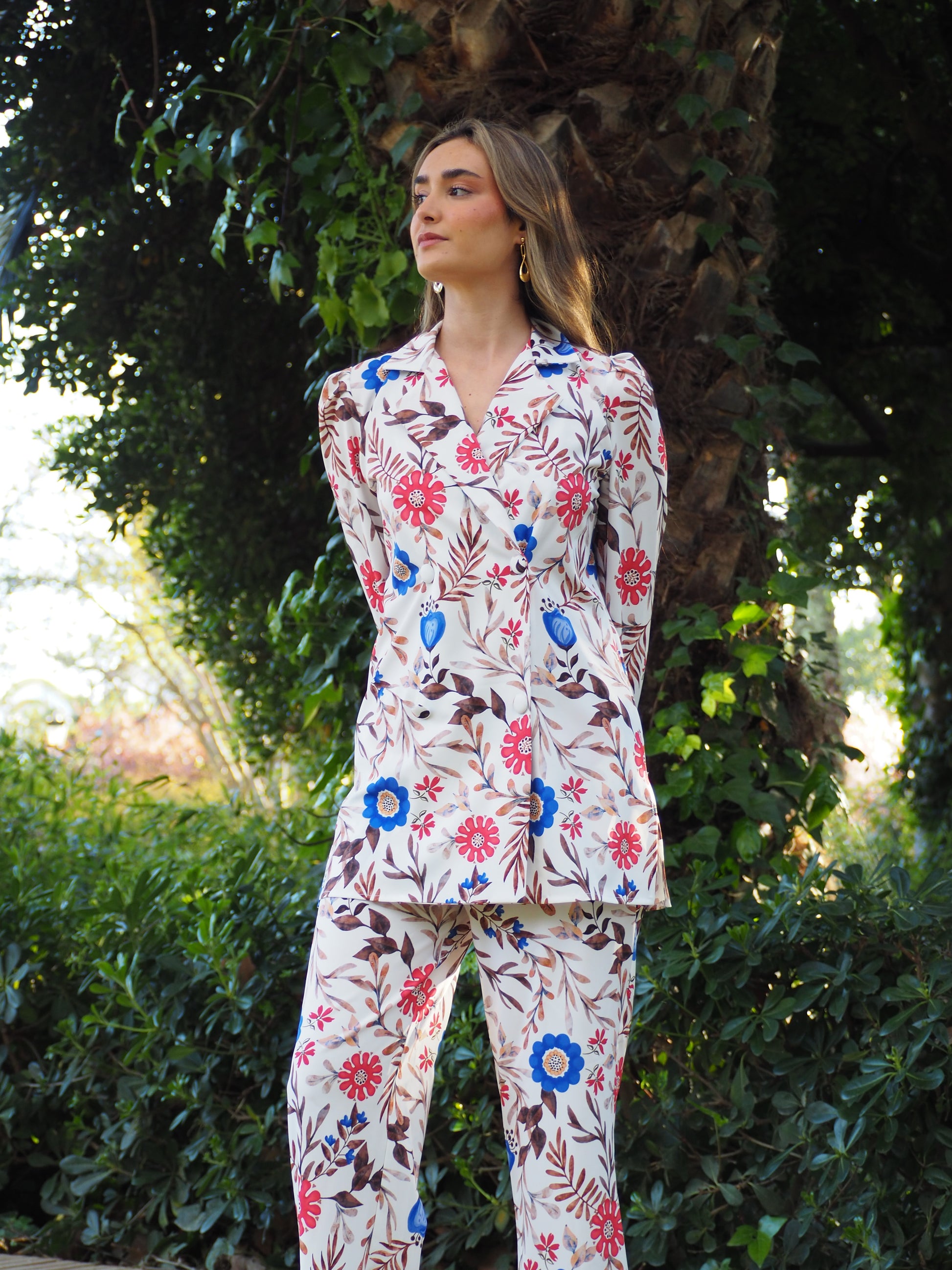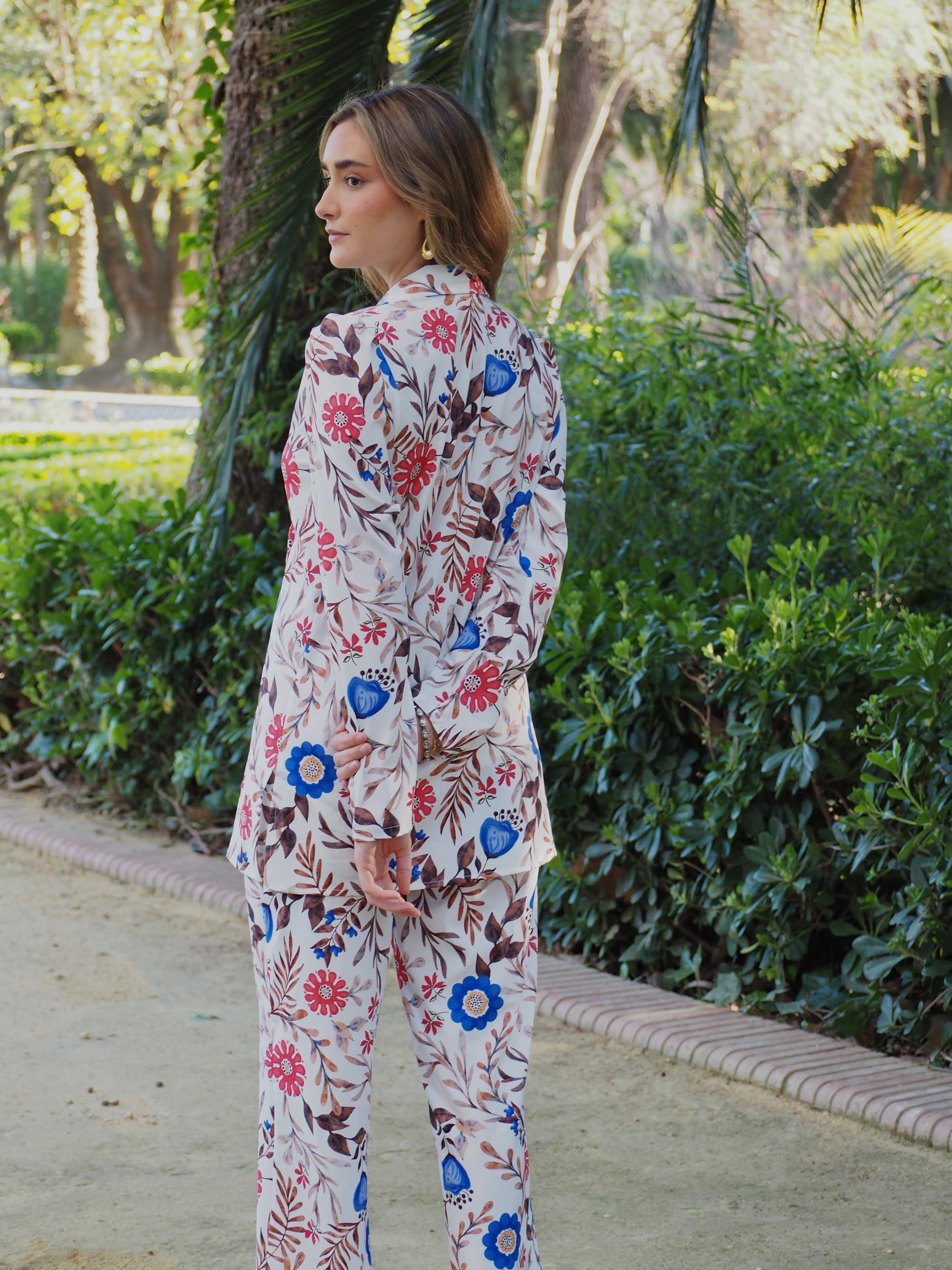 Conjunto estampado de casaca y pantalón culotte con cinturilla de goma en estampado DE FLORES.