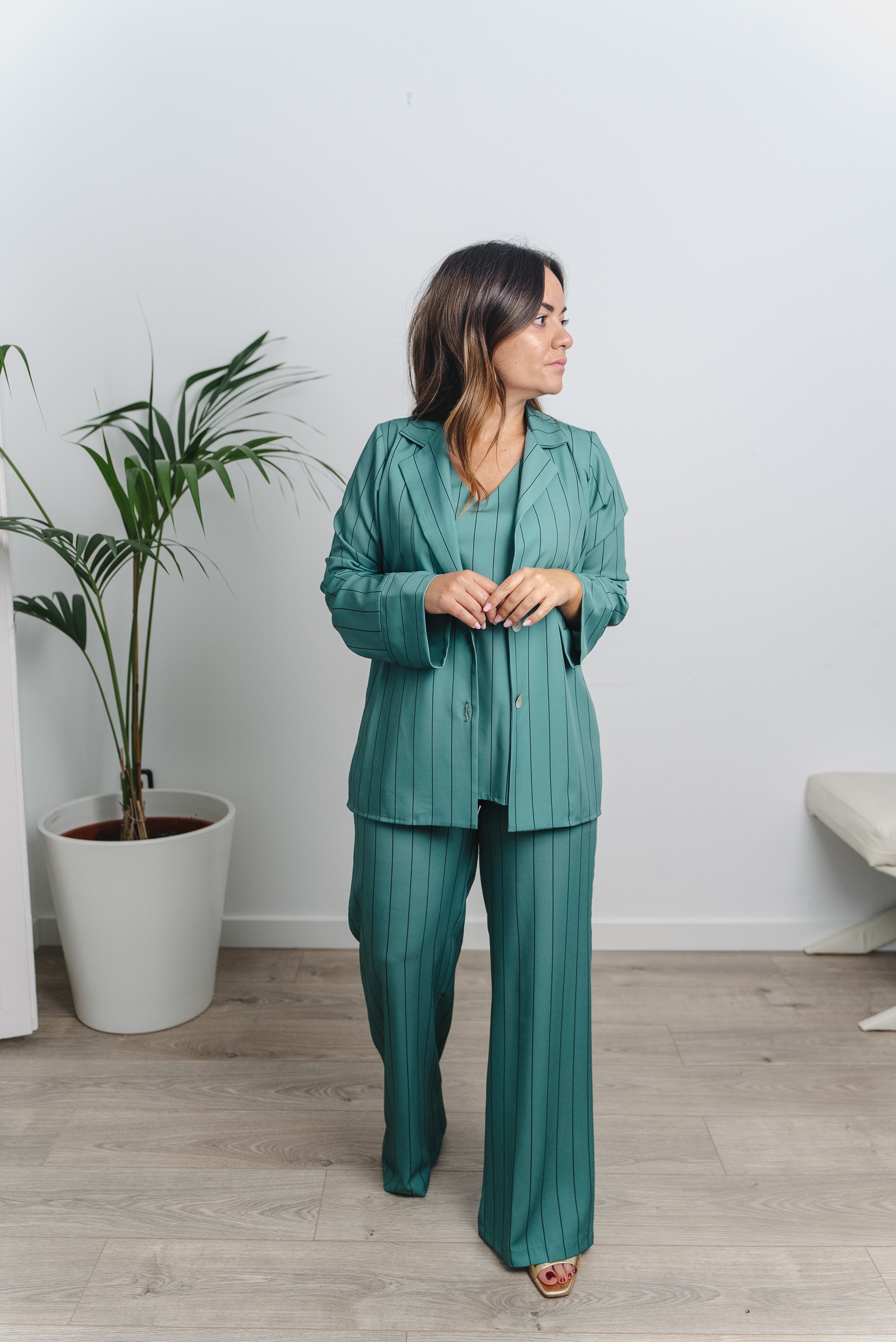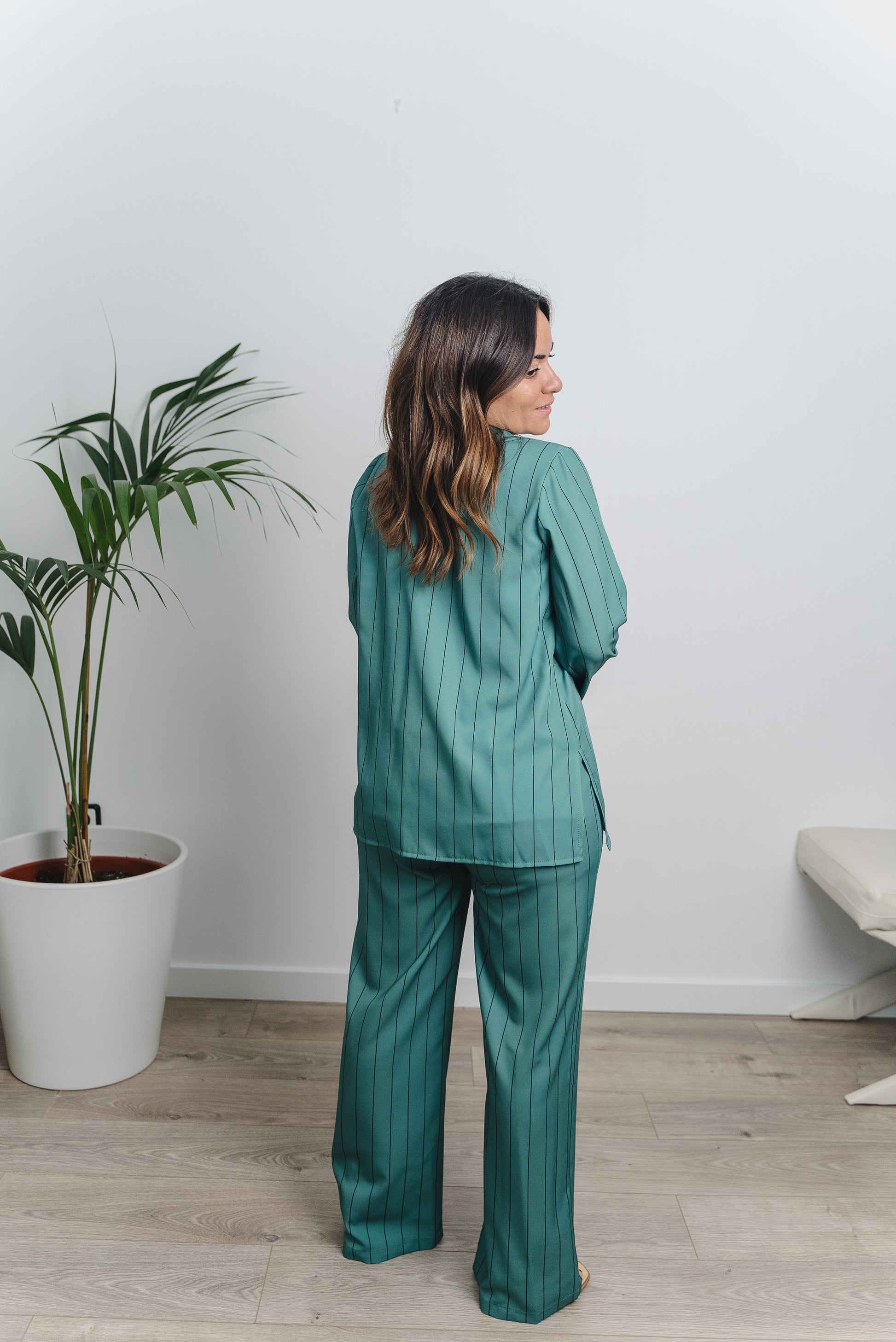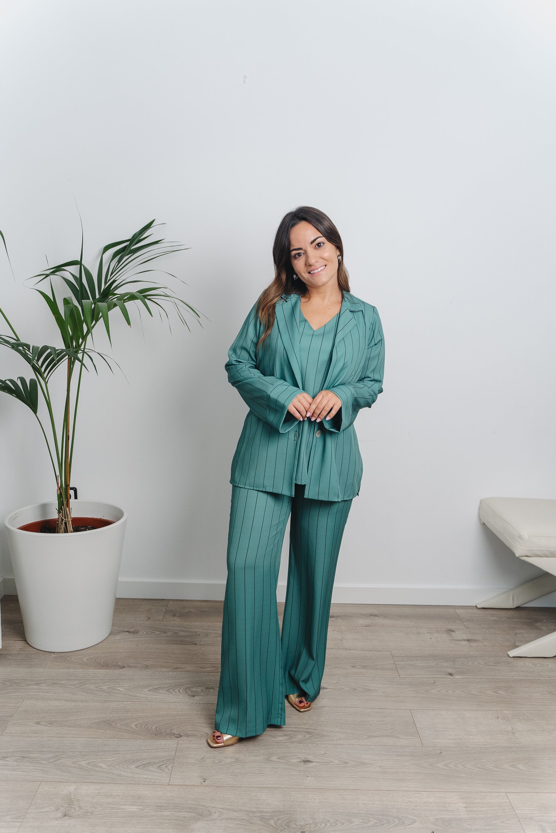 Conjunto compuesto por casaca manga larga, top y pantalón con cinturilla de goma.