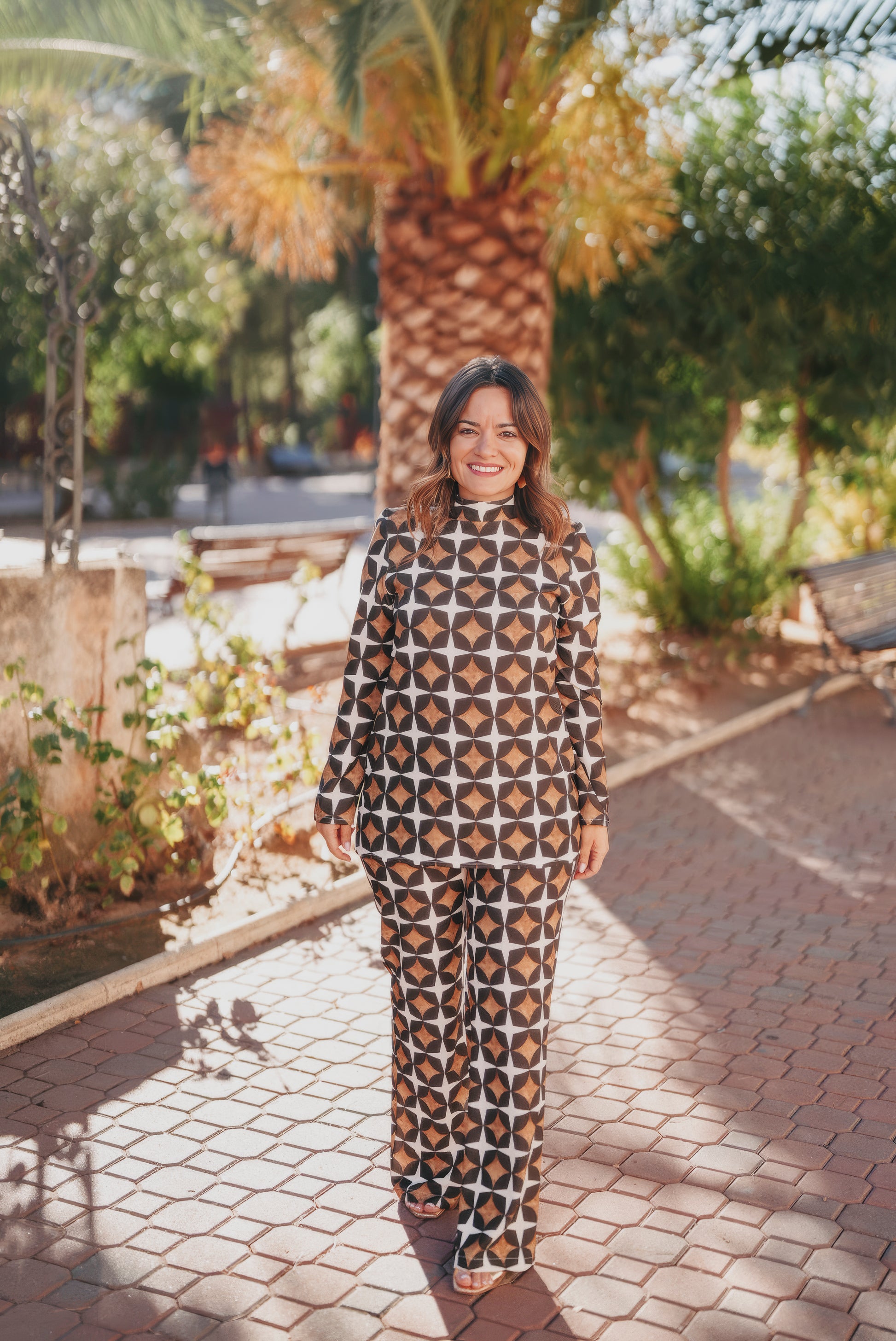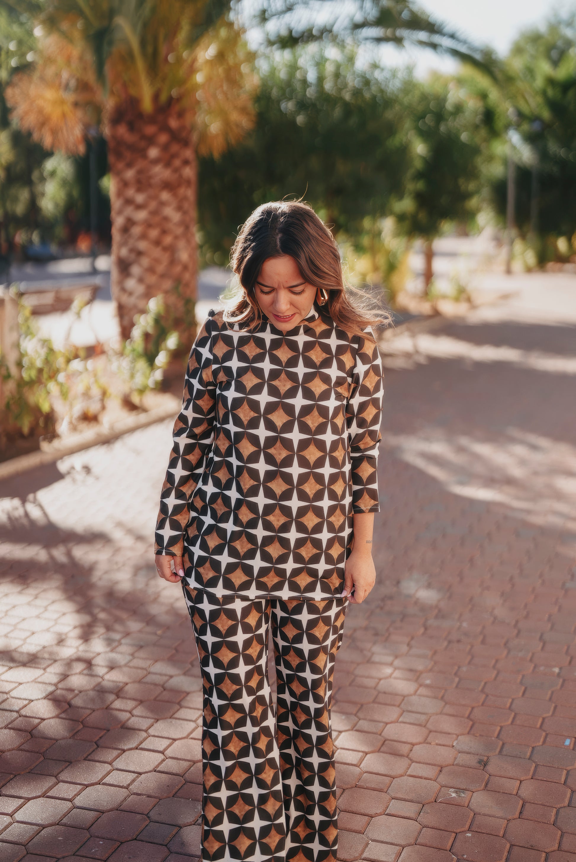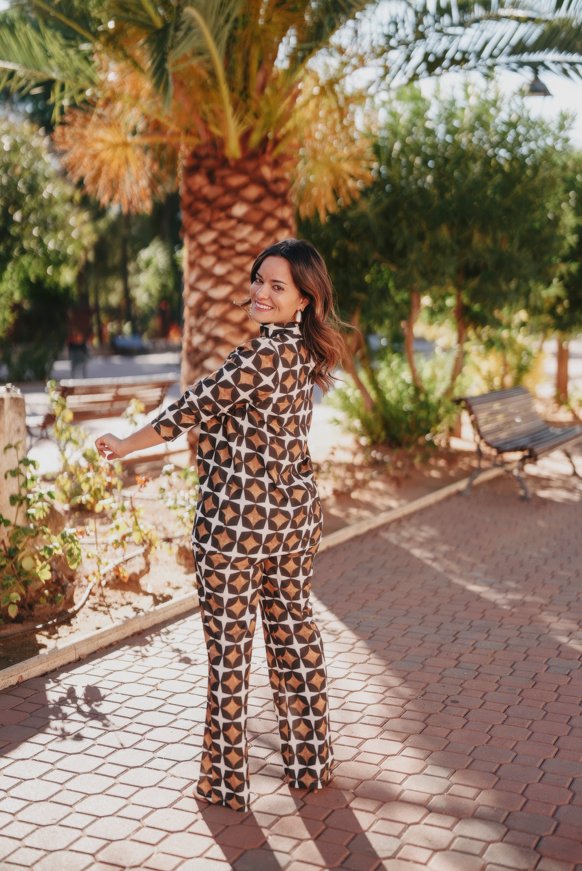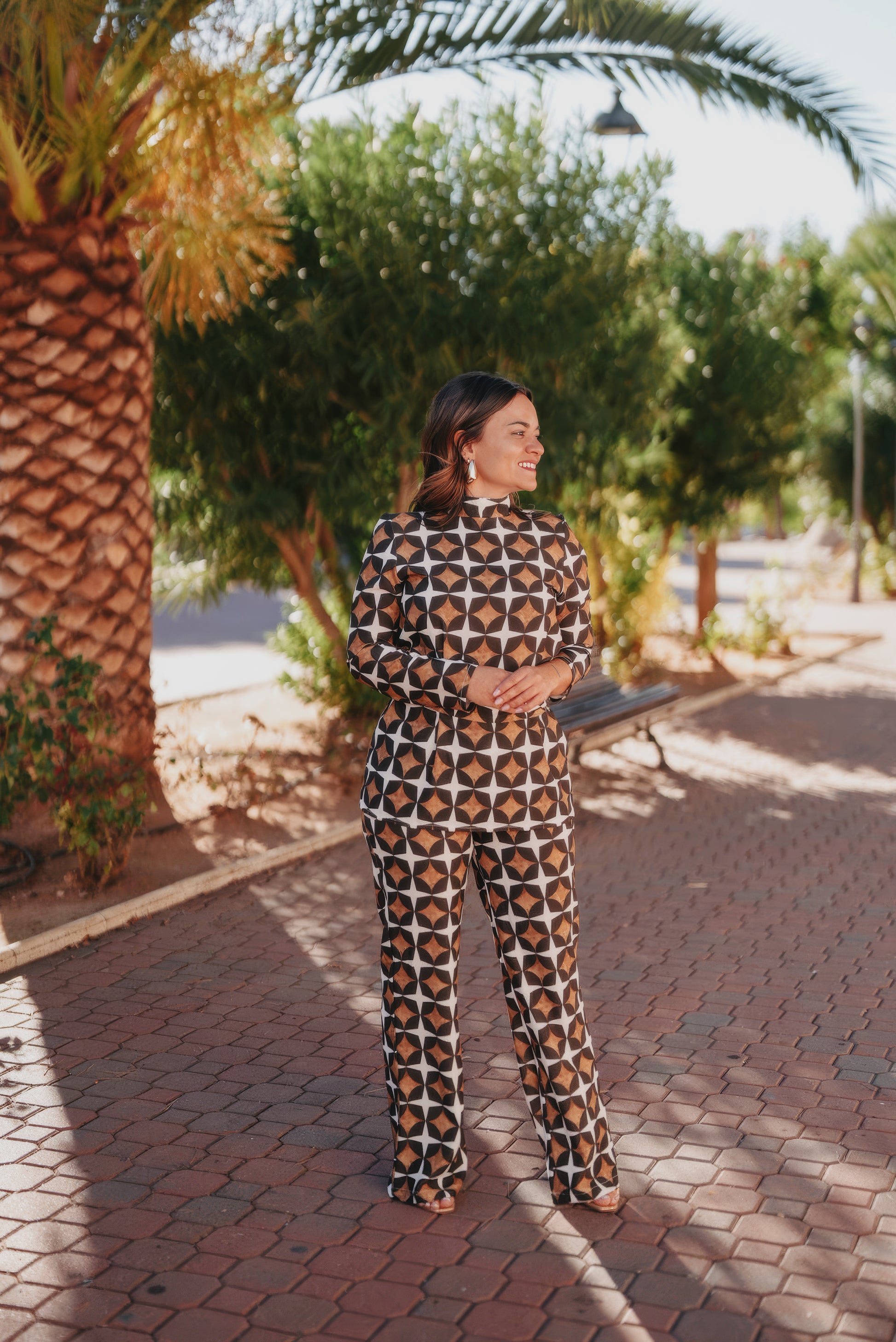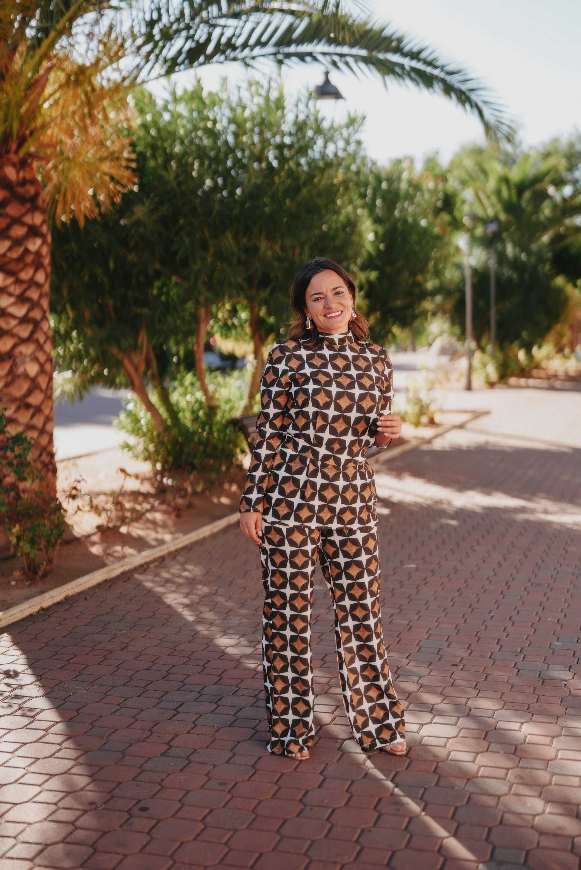 Pantalón con estampado geométrico y corte flare.